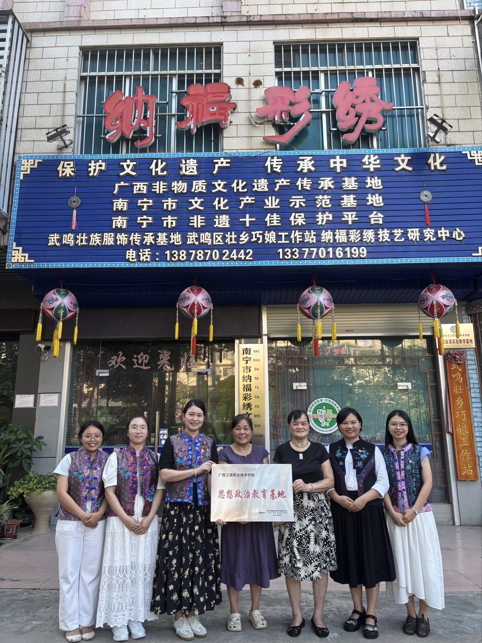 为推动思想政治理论课教学与中华优秀传统文化的有机融合,落实立德树人根本任务,2025年10月16日,广西工商职业技术学院与南宁市纳福彩绣文化传媒有限公司联合开展思想政治教育基地共建活动。此次活动在南宁市纳福彩绣文化传媒有限公司顺利举行,马克思主义学院部分教师、公司负责人及非遗传承人陆兰珍共同参加。