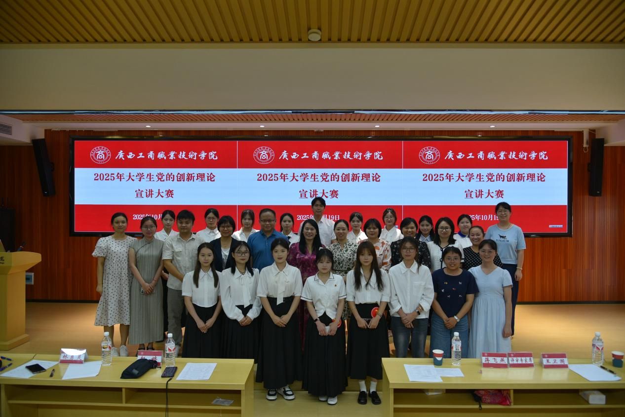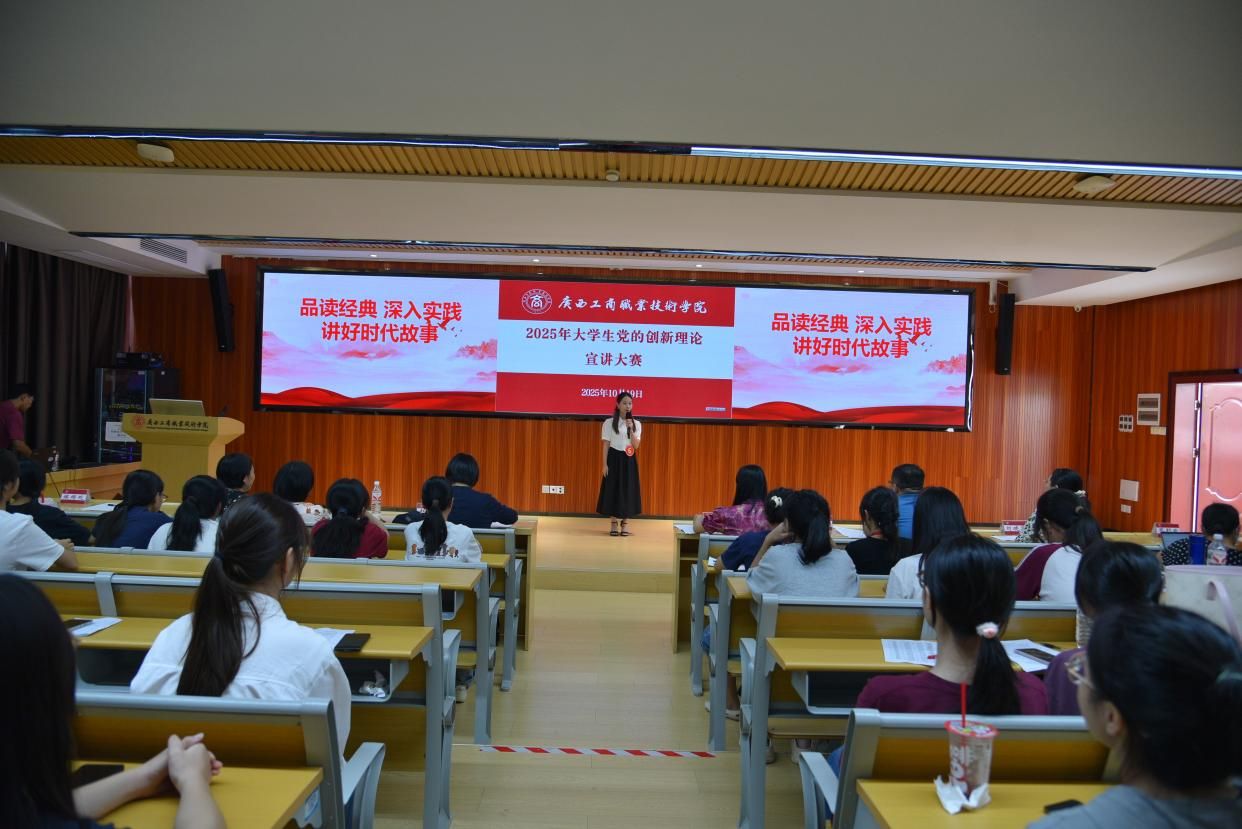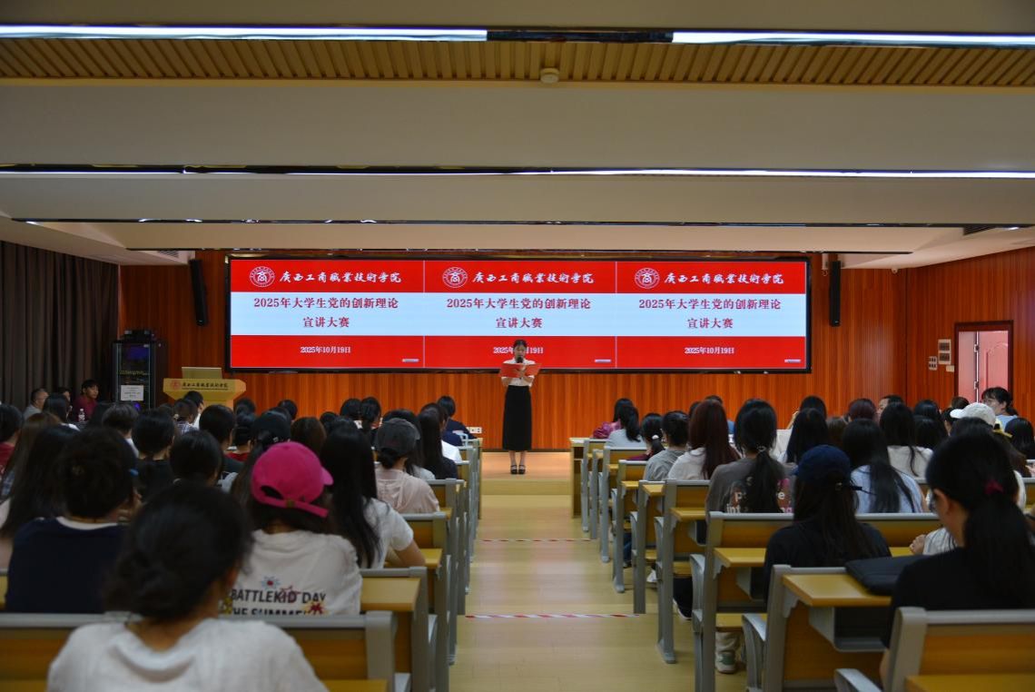 为进一步推动学习宣传贯彻习近平新时代中国特色社会主义思想走深走实走心,不断增进大学生对党的创新理论的政治认同、思想认同、理论认同、情感认同,10月19日下午,由广西工商职业技术学院马克思主义学院承办的“2025年大学生党的创新理论宣讲大赛”在鹏飞校区2145教室顺利举行。