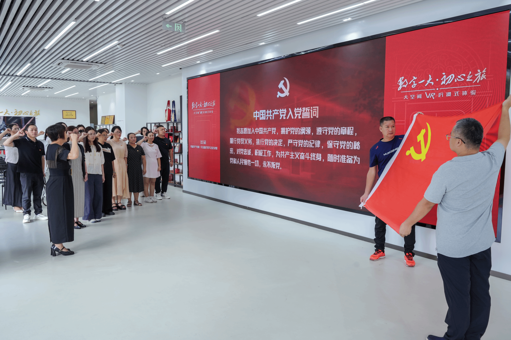 活动伊始,在场馆工作人员的详细讲解下,支部党员认真了解了活动流程与安全注意事项。随后,全体党员沉浸式体验了《数字一大·初心之旅》大空间VR项目。借助先进的5G-A技术与VR设备,同志们仿佛穿越时空,亲身“回到”中国共产党梦想起航的地方,深刻感受建党初期的艰难历程与革命先辈们的坚定信仰,在震撼的视觉冲击和情感共鸣中接受了一次深刻的党性洗礼和初心叩问。