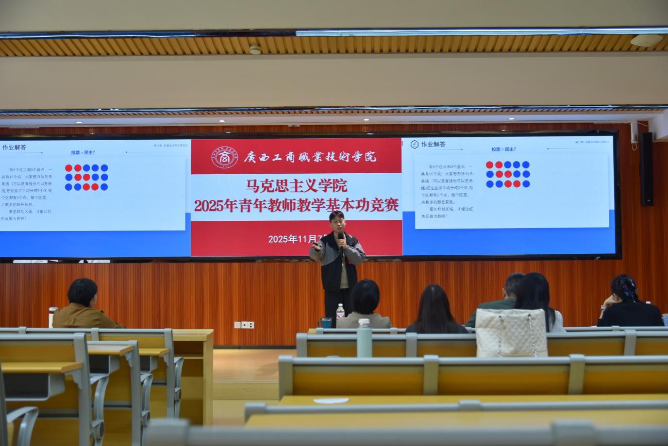 深研理论青年言,扎实功底现风采。2025年11月7日,马克思主义学院在鹏飞校区举办了2025年青年教师教学基本功比赛。此次比赛吸引了12位思政课教师踊跃参与,同台竞技。