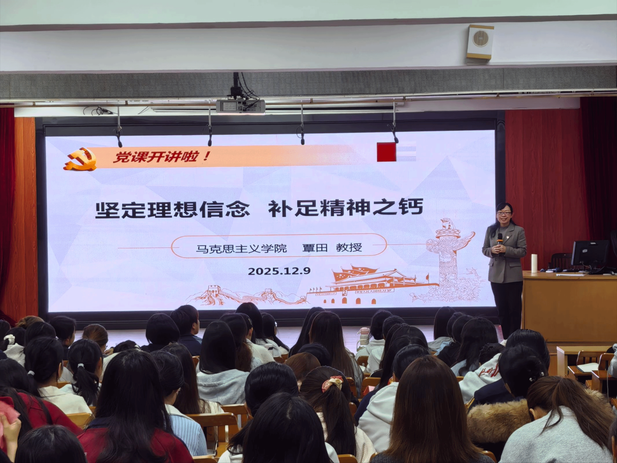 覃田老师为入党积极分子上专题党课