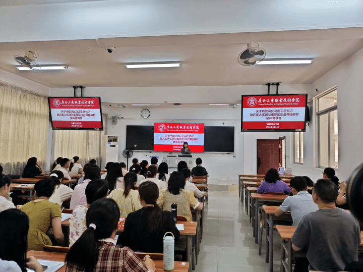 首先,陆礼娟、陶艳兰两位老师分别围绕“习近平新时代中国特色社会主义思想概论”“思想道德与法治”两门课程作建设汇报。接着,青年教师文景玉、谢梓浩、凌一菲、洪佳佳紧扣课程核心章节开展教学展示,精神昂扬饱满、教态从容自然,教学设计紧扣时代脉搏、贴近学生实际,综合运用案例式、议题式、互动式等多元教学方法,充分展现出扎实深厚的理论功底、守正创新的教学理念与娴熟稳健的课堂驾驭能力,生动彰显了我院青年思政教师昂扬向上的蓬勃朝气与过硬教学基本功。同时,本次备课会特别邀请2025年全区思政课教师教学基本功比赛特等奖获得者—— 广西工商职业技术学院马克思主义学院陈伟清老师、广西交通职业技术学院马克思主义学院吴爱鲜老师开展现场教学示范。两位教师以扎实深厚的理论素养、精湛娴熟的教学技艺与真挚生动的课堂表达,将理论深度、情感温度、价值高度有机统一、融会贯通,为全体参会教师呈现了一堂高水平、高质量的思政示范课,充分展现了优质思政课的内涵与魅力,切实发挥了优秀教师的示范引领与辐射带动作用。
